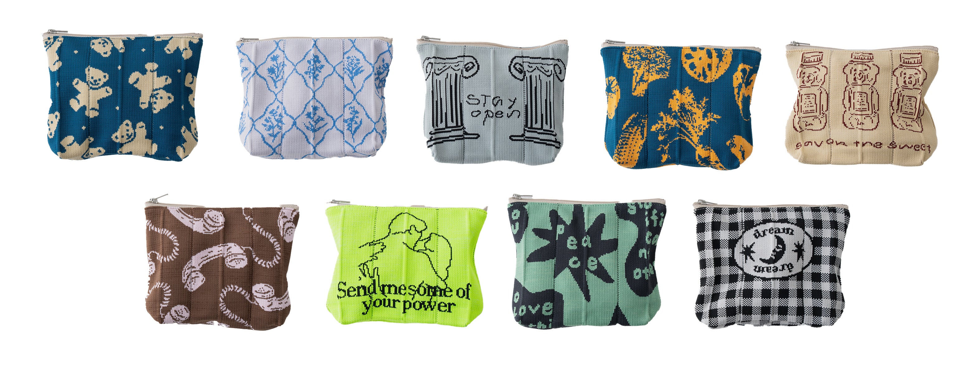 dalazdaakaaによって施された手編みのような柄が溢れたデザインが魅力の「Coiny」は、コインケースとしてはもちろん、アクセサリーやリップ、常備薬などの持ち運びにも頼れる作品。ポケットやミニバッグにも収まるコンパクトなつくりで、汚れても丸洗いできるのがポイント。ちょっとしたギフトにもおすすめです。