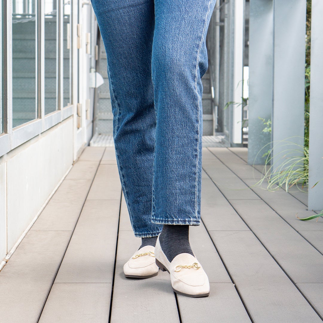 さらに、ウール素材の柔らかさを素肌にしっかり感じられる設計で、長時間の着用でも快適な履き心地を保ちます。