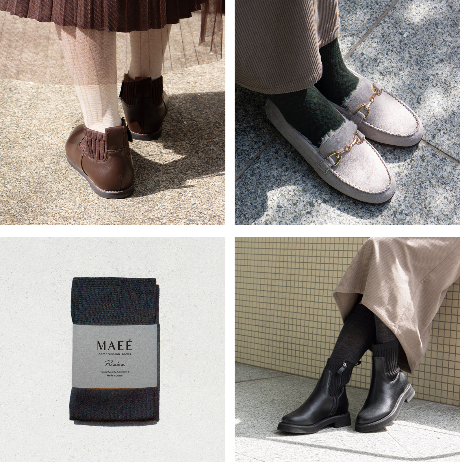MAEEコンプレッションソックスは、2023年10月の発売以来、上質なソックスでありながら、豊富なカラーバリエーションと、様々なタイプで展開しており、履くだけで気になる脚のむくみを予防・軽減できる着圧ソックスとしてご好評をいただいています。