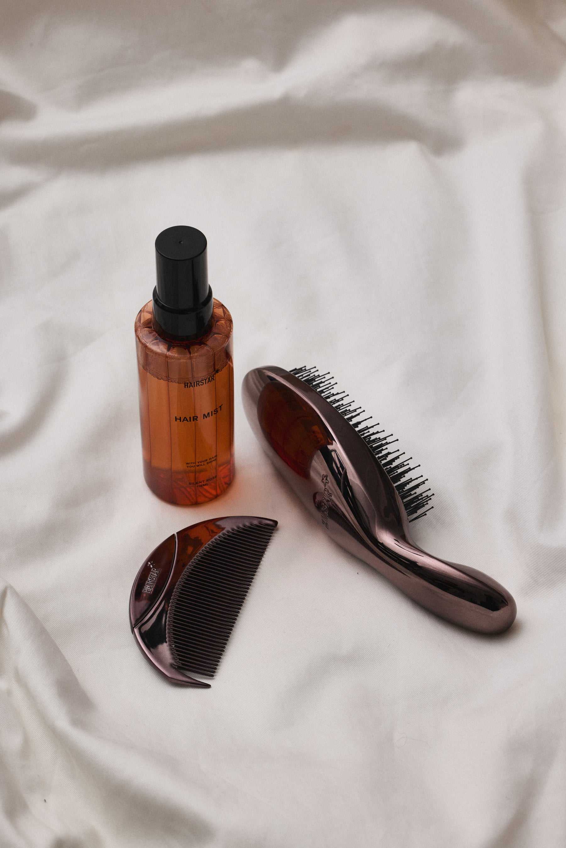 - 朝のスタイリングの仕上げに イオンスターブラシで全体を整えたあと、スターコームで前髪や分け目を綺麗に調整。