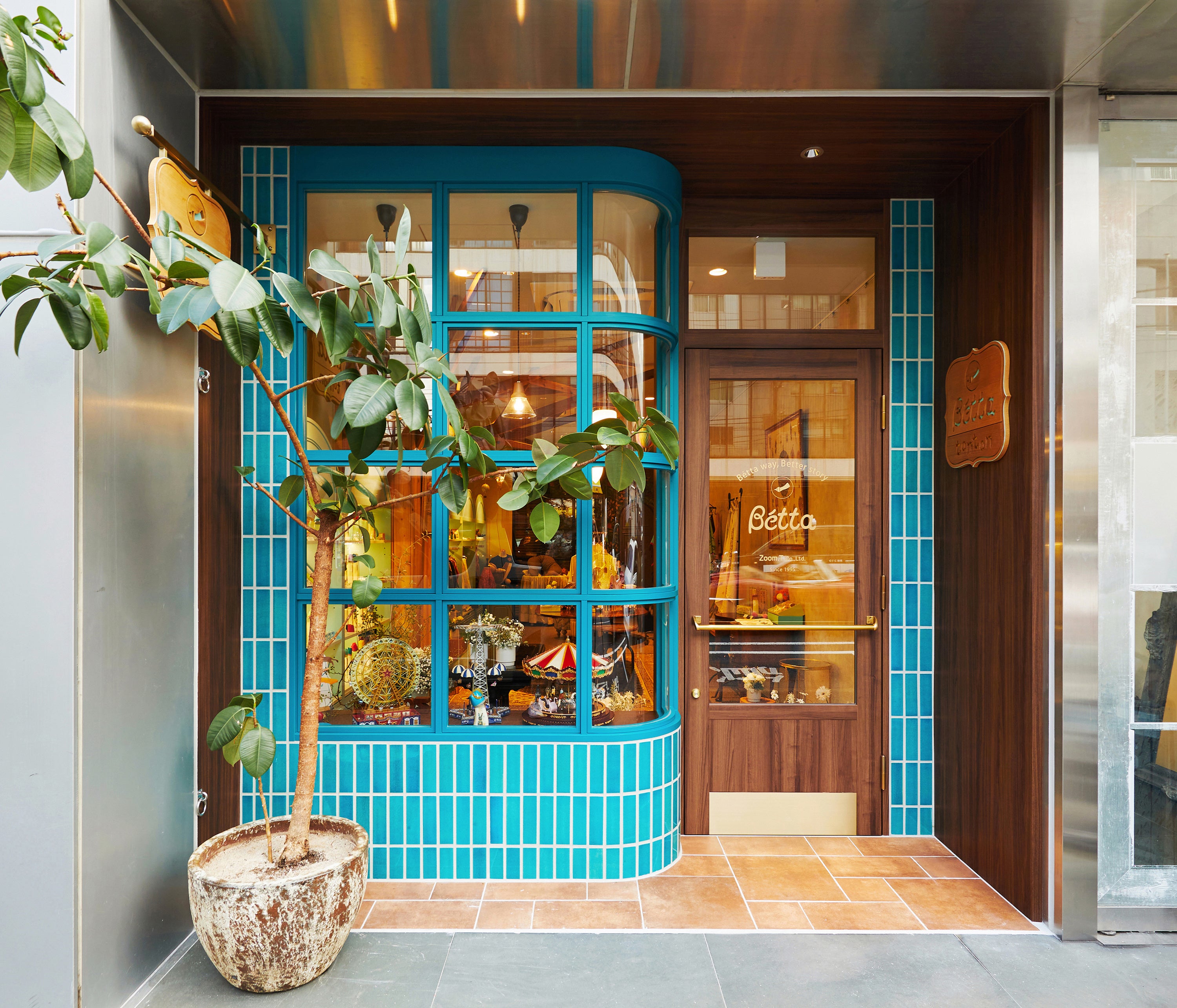 入り口は鮮やかなブルーのタイルとあたたかみのある木製扉がお出迎え。『Betta tonton』の看板が目印です。店内には授乳室やオムツ替えコーナーもあり、お買い物ついでに気軽にお立ち寄りいただけます。