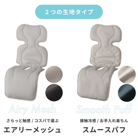 <シート素材>スムースパフ:ポリウレタン、エアリーメッシュ:100%ポリエステル