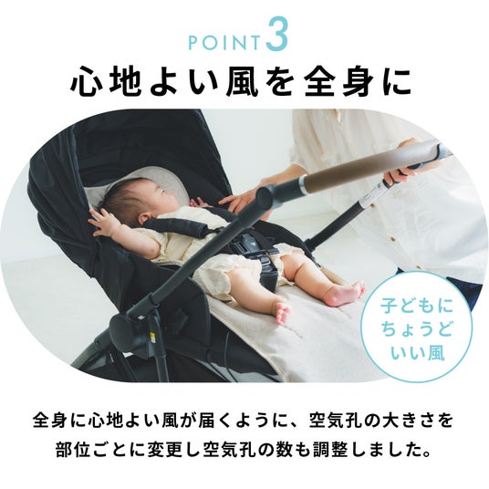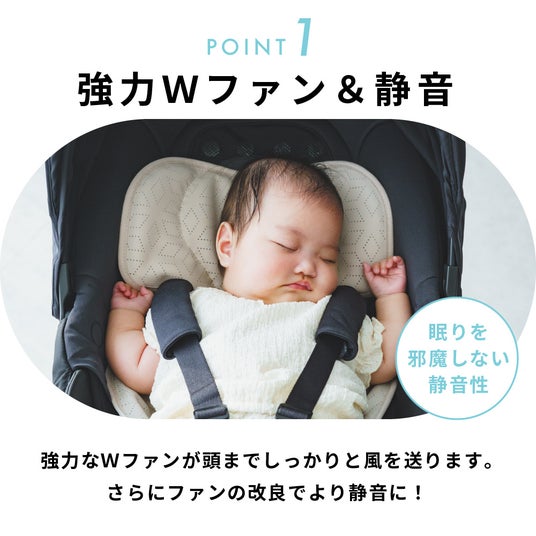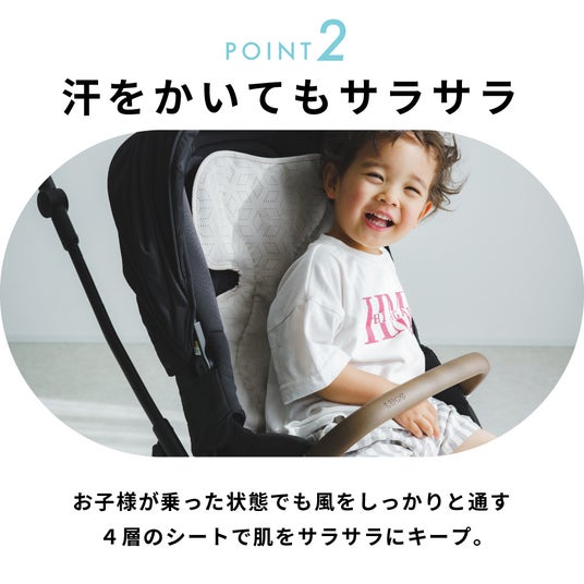 春からの気温上昇に備えて!「涼しい風がフーッ!と吹く」静音ファンで快適に過ごせるベビーカーシートが新登場。2025年4月発売開始。