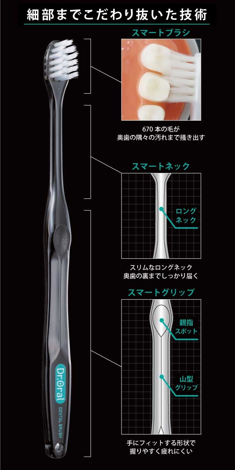また、こだわり抜いたDr.Oralの歯ブラシは「トラベルセットに入っている歯ブラシ=おまけ」のような概念を覆す、高機能でなめらかな磨き心地です。