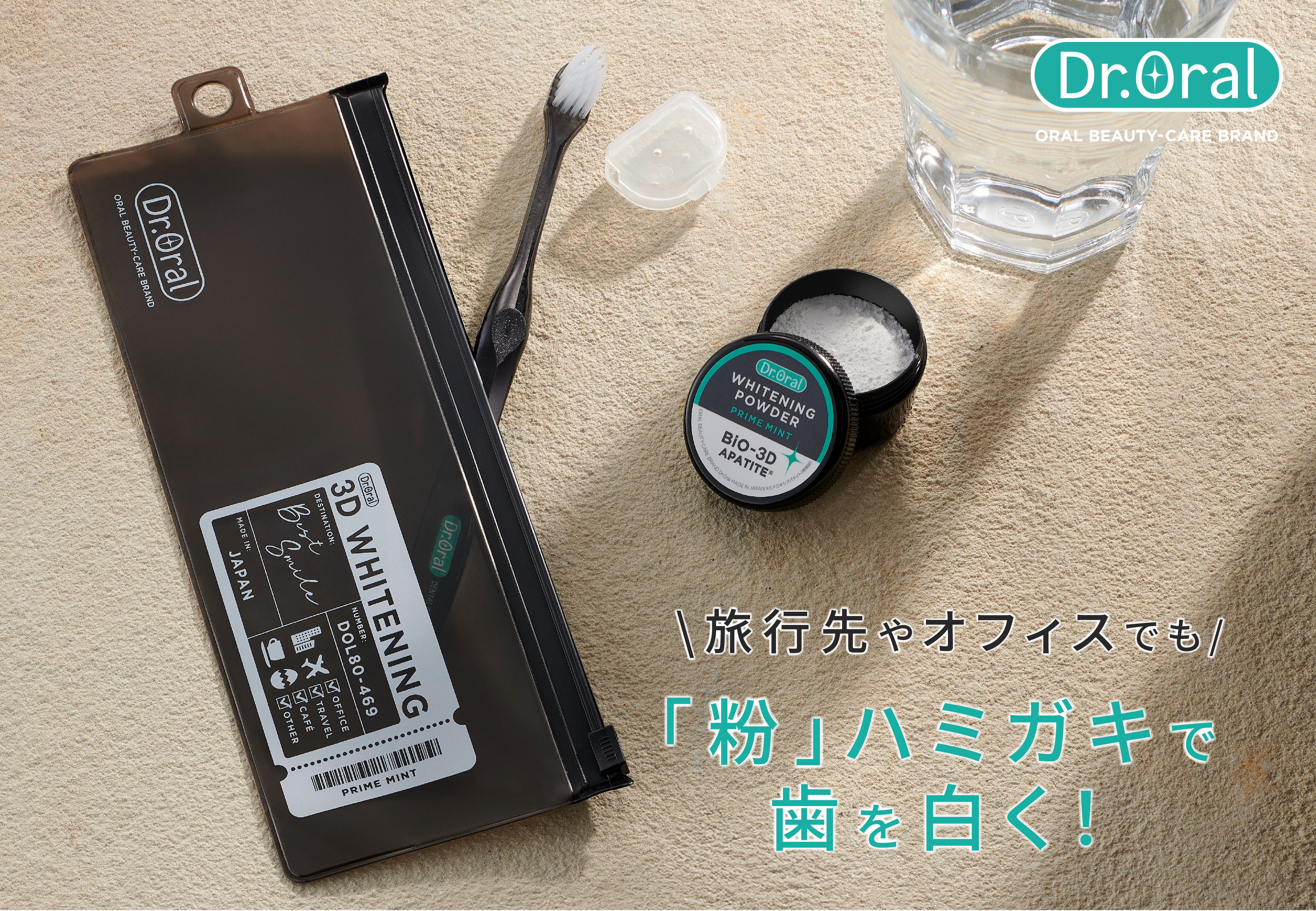 そんな想いから、Dr.Oral人気No.1の美白※「粉」ハミガキを携帯できるトラベルセットの開発を決めました。