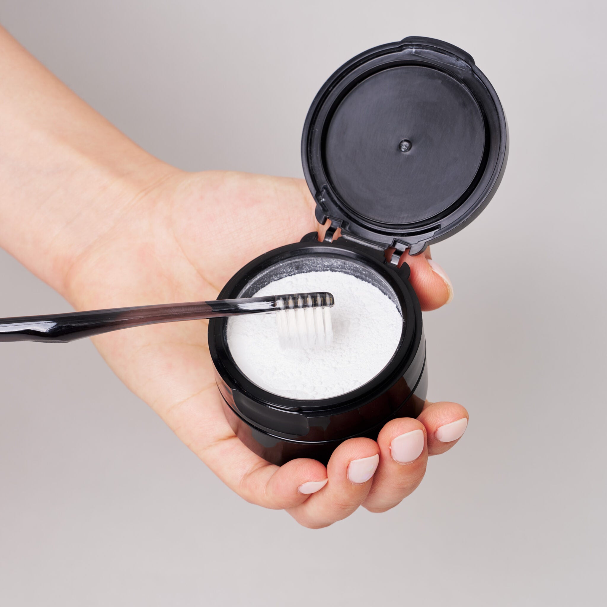 旅行先やオフィスでも、「粉」ハミガキで歯を白く!
