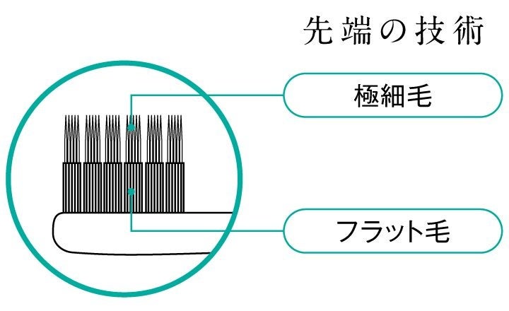 フラット毛は歯の表面をやさしくしなやかに磨き、歯の表面をつるつるに。