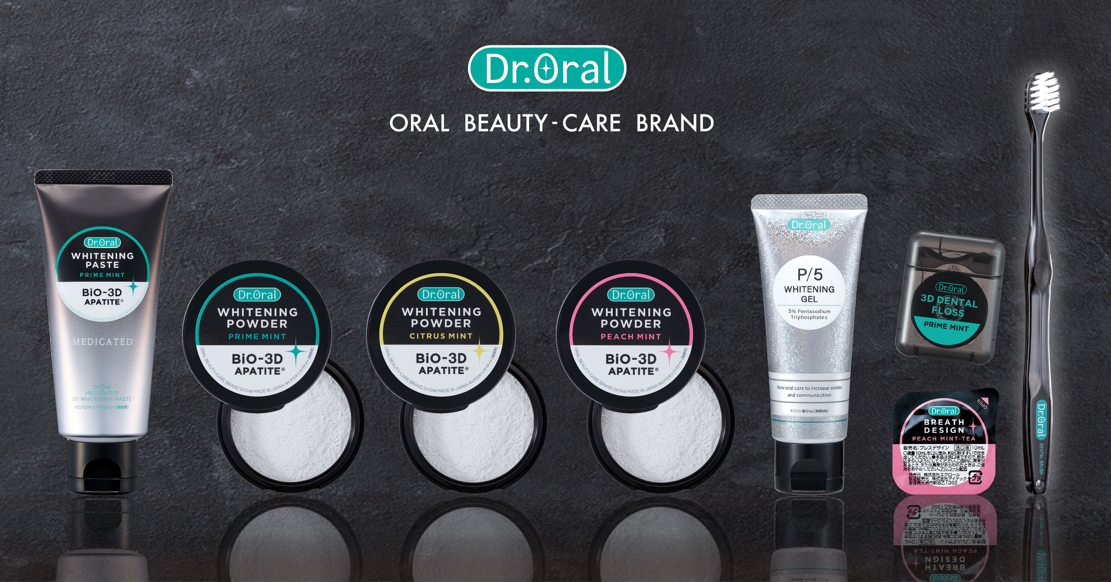 Dr.Oralは、「3Dホワイトニング」(=歯の表面だけでなく、裏側も奥も、すき間も歯と歯ぐきの間にも行き届き、3次元(3Dimensions)、全方位磨き残しゼロを目指すホワイトニングケア)をコンセプトに、美しく白い歯になることで、笑顔とコミュニケーションを増やしたい。そんな想いから生まれたオーラルケアブランドです。