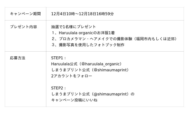 バングラデシュの児童労働問題の解決に取り組む Sunday Morning Factory株式会社(本社:福岡県福岡市、代表取締役:中村将人)が展開する、オーガニックコットンのベビー服・子ども服および出産祝いギフトブランド「Haruulala organic(ハルウララ オーガニック)」は、フォトブックサービスを提供する株式会社しまうまプリント(本社:東京都新宿区)と共同で、2025年12月4日(木)よりコラボレーションキャンペーンを開催いたします。