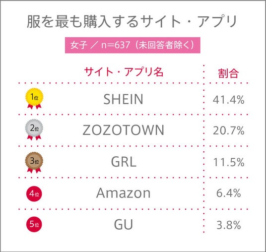女子の1位は“SHEIN”。2位に2倍の差をつけてのランクインとなり、男子では3位にランクインしました。