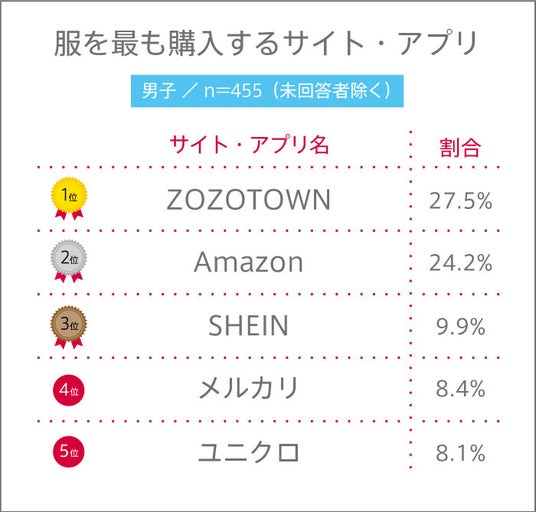 男子は“ZOZOTOWN”と“Amazon”が半数以上を占める結果となりました。