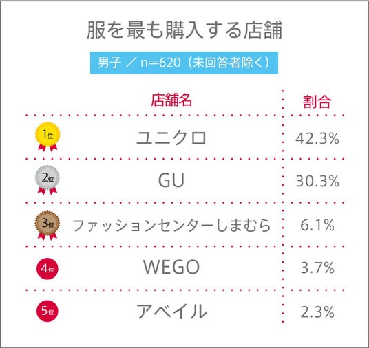 店舗の1位は男子は“ユニクロ”、女子は“GU”! サイト・アプリで1位となったのは?