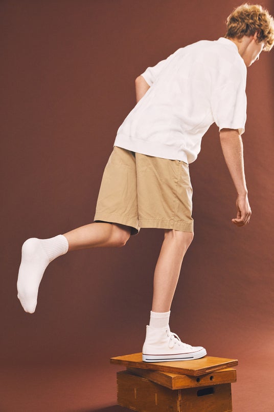メンズの新作アイテム「Walky」。70年代のムードを纏いながらもフレッシュな表情に仕上げました。限界まで撚り続けた特殊綿糸からなる履き心地でスーパードライタッチを実現。毛羽を抑えたクリアな表情がレトロになりすぎず新鮮さを醸し出すアイテムに。
