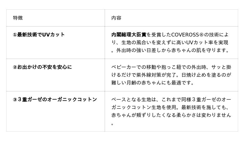 赤ちゃんと地球に優しいオーガニックコットンベビー服を展開する「Haruulala organic(ハルウララ オーガニック)」は、第 11 回技術経営・イノベーション大賞にて「内閣総理大臣賞」を受賞した次世代テキスタイル技術「COVEROSS(R)(カバロス)」を導入した、ブランド初となる UV カット機能付きブランケットを発売いたします。