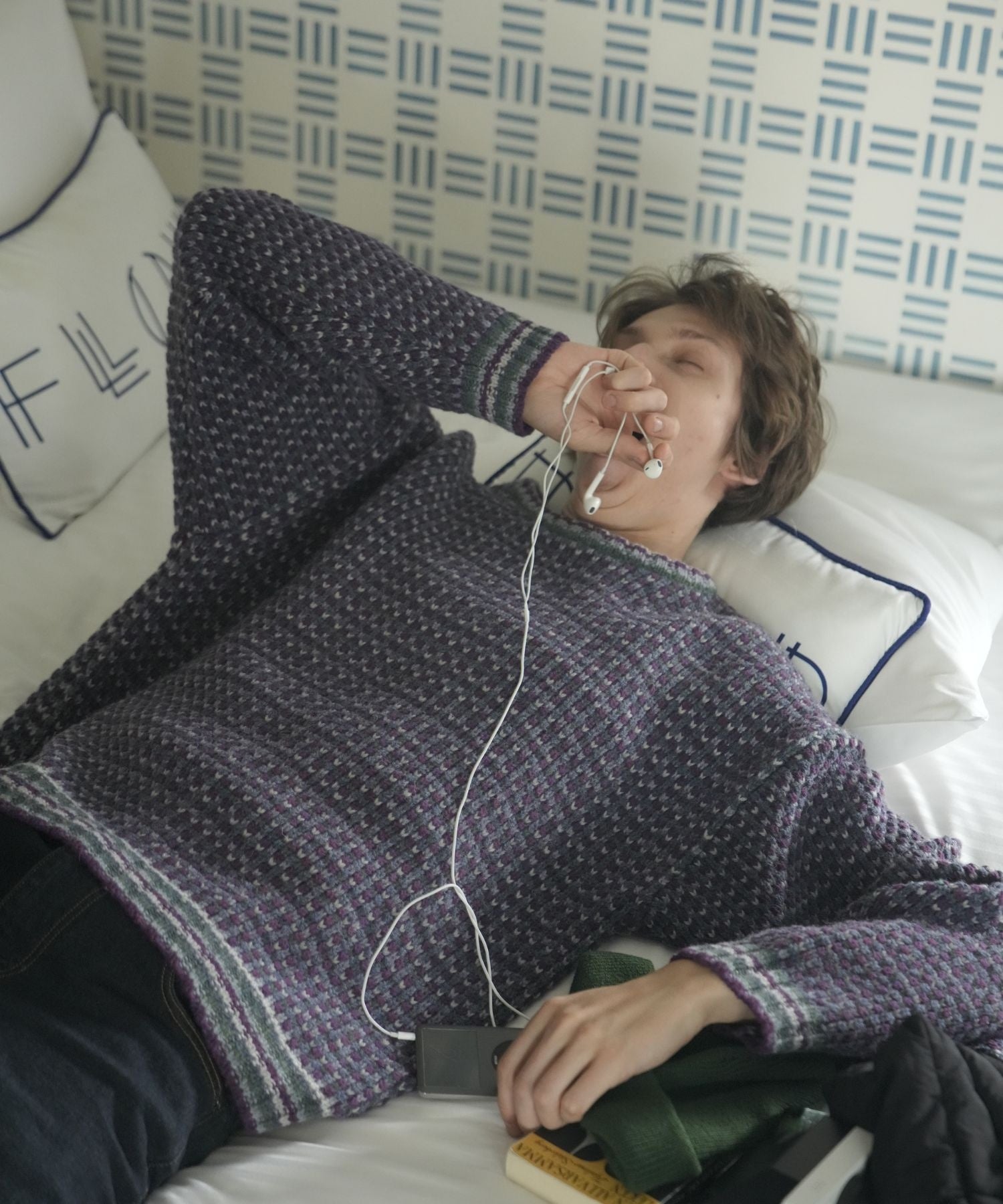 80~90年代に誕生したエディー・バウアーの隠れた名品「ポップコーンニット」を、『men’s FUDGE』ならではの感性で再解釈。ドロップショルダー仕様のゆったりとしたシルエットに仕立て、4色のウール糸を複雑に編み込んだ立体感のある編地が、秋冬スタイルの主役にも名脇役にもなる存在感を放ちます。アウターの下でも映えるデザイン性と、程よくリラックスした着心地を両立した一枚。