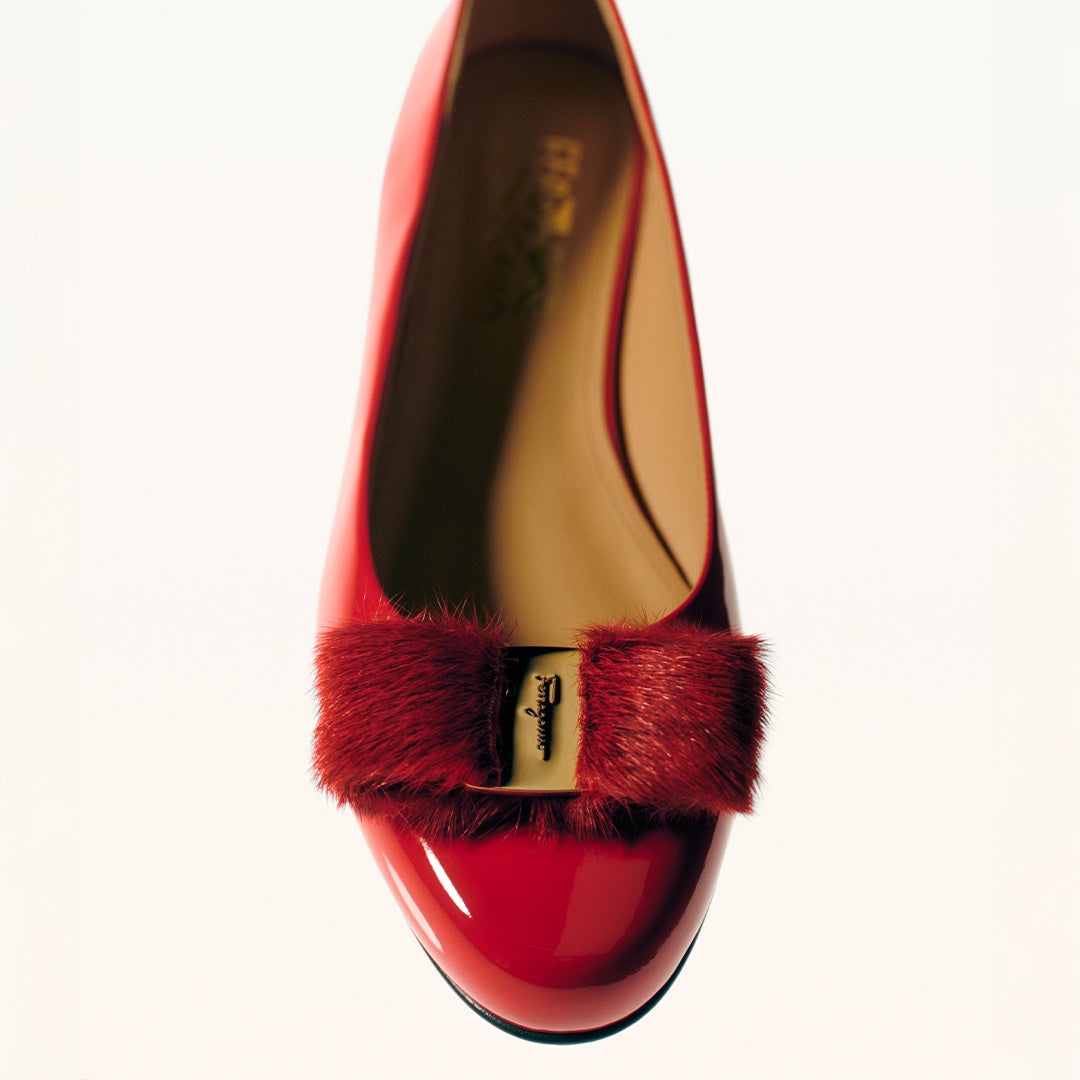 このビジュアルでは、フィアンマの妹ジョヴァンナ・ジェンティーレ・フェラガモも特別出演し〈ヴァラ〉のデザインそのものだけでなく、それが象徴するスピリットを讃えている。〈ヴァラ〉のリボンはどの形においても自由さと真の自分らしさ、そしてエレガンスと意志をもって世界を歩む喜びを表現してきた。 それは、〈ヴァラ〉を選ぶ女性たちと同じように、本質を見失うことなく、常に進化し自らを新しくし続けるアイコンである。