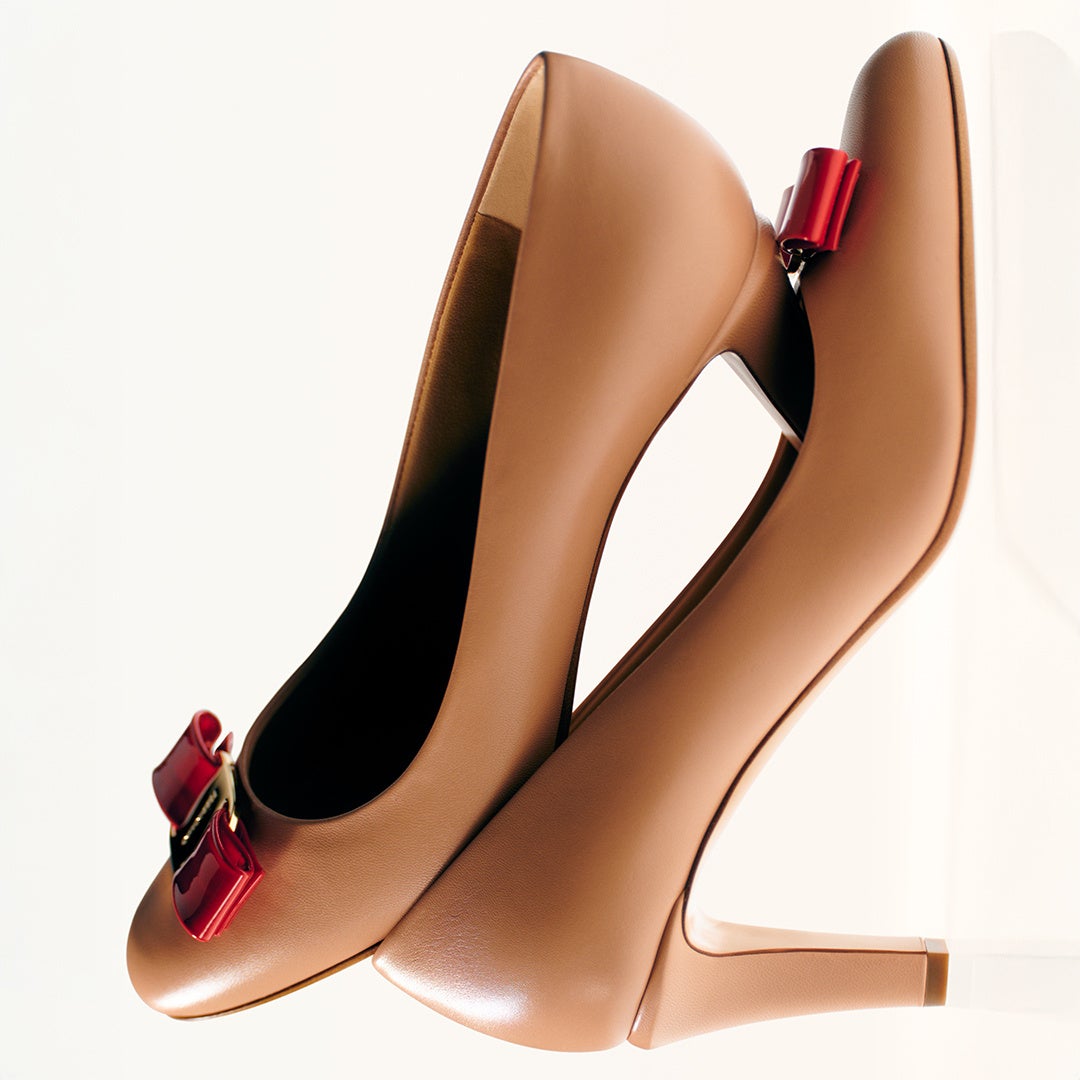 今日に至るまで、そのリボンのひと折りひと折りには、フェラガモの感性と卓越したクラフツマンシップが息づいている。世代を超えてフェラガモを築き上げてきた熟練の技、創造性、そして才能は、ブランドのビジョンにインスピレーションを与えてきた女性たちとも共鳴し、伝統と革新、情熱とつながりエレガンスと自立のあいだで、しなやかに調和している。