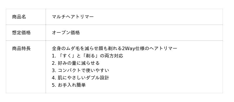 こうした日常のケアにおける不便さに着目し、**「1本で、全身のムダ毛をすくことも顔を剃ることもできるケア用品」**を目指して開発されたのが、「さよならボーボー」男性向けマルチヘアトリマーです。