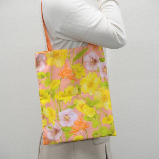クリスマスローズやバラが大胆に描かれた「エコバッグ」は、A4サイズのノートや500mlのペットボトルも入るサイズ感でオフィスやちょっとしたお出かけなど様々なシーンで活躍する優れものです。