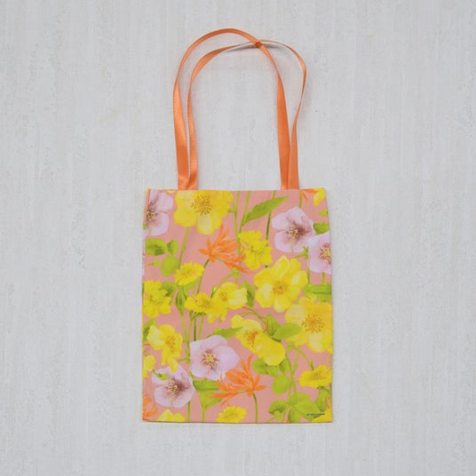 華やかな花柄がコーディネートのアクセントになるA4サイズのトートバッグ。