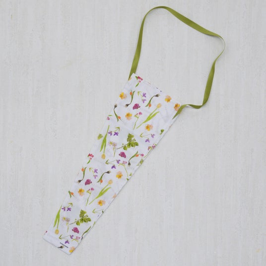 切り花専用のエコバッグ。先端の裏側はアルミ素材で水がしみにくい構造になっています。