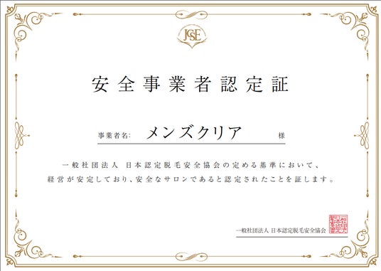 脱毛に通うことに不安を感じているお客様へメンズクリアは、2024年に一般社団法人日本認定脱毛安全協会が定める厳しい基準を満たし、「安全事業者認定」を取得しました。認定の付与条件:直近3期連続で黒字経営*⁴であること、直近3期に取引先への支払滞納がないこと
