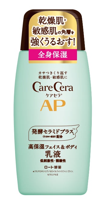 ケアセラ APフェイス&ボディ乳液カサつきくり返す乾燥肌・敏感肌に。「ケアセラAP高保湿フェイス&ボディ乳液」はなめらかな使い心地で全身にも塗り広げやすく、すーっとなじむ乳液です。肌機能を根本から見直し、皮膚科学研究から生まれた、機能性ボディケア。カサつきや肌荒れをしつこくくり返す乾燥肌へ。