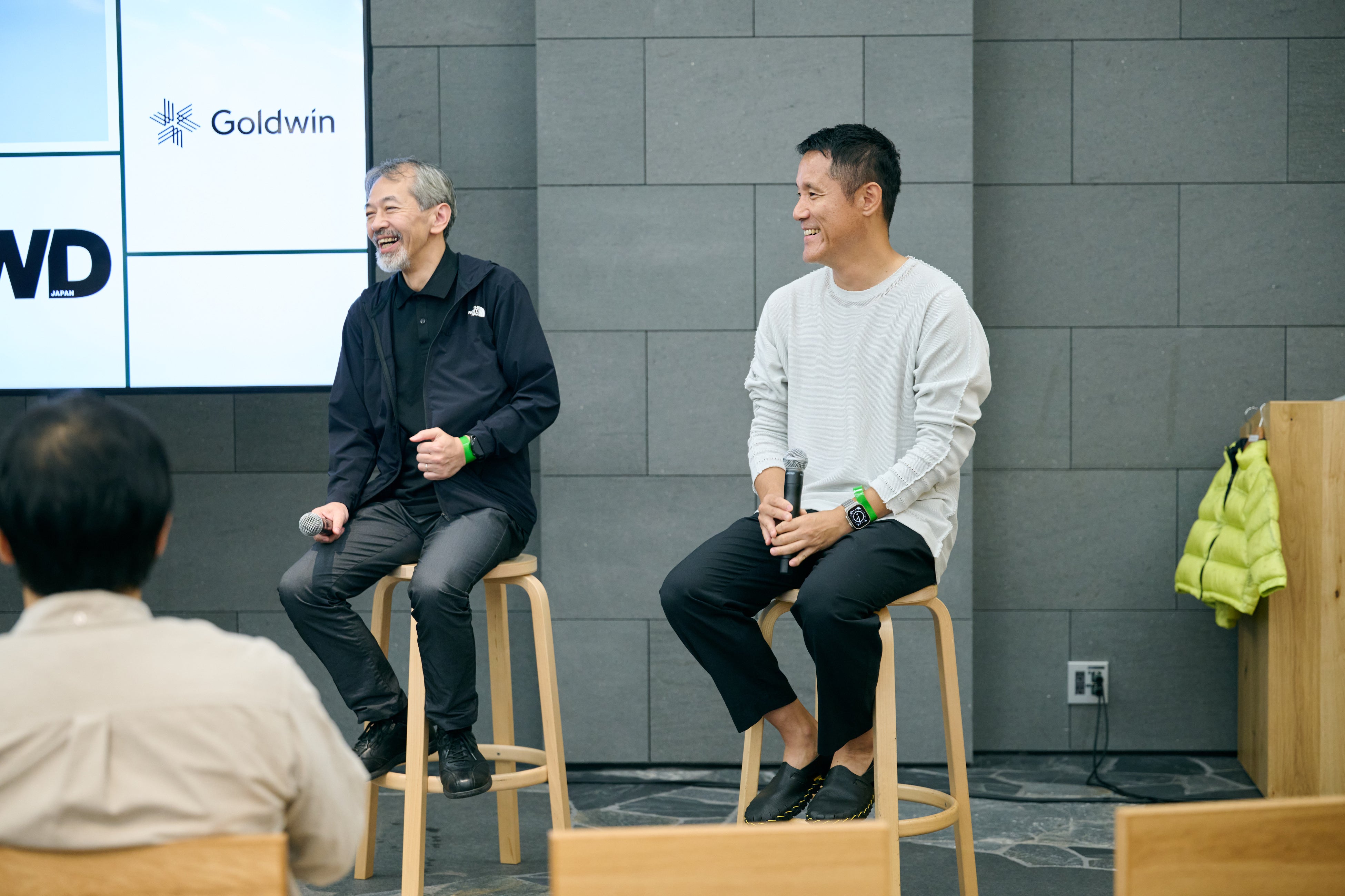 株式会社ゴールドウィンとパナソニック株式会社が共同開発した「ダウンジャケットコース付き新型洗濯機」とサステナビリティをテーマに、会場にてトークショーを開催。登壇者はゴールドウィン総合企画本部マーケティング部長の山屋光司氏、パナソニック ドラム洗商品企画課の國司有香氏、そして「WWDJAPAN」サステナビリティディレクターの向千鶴。