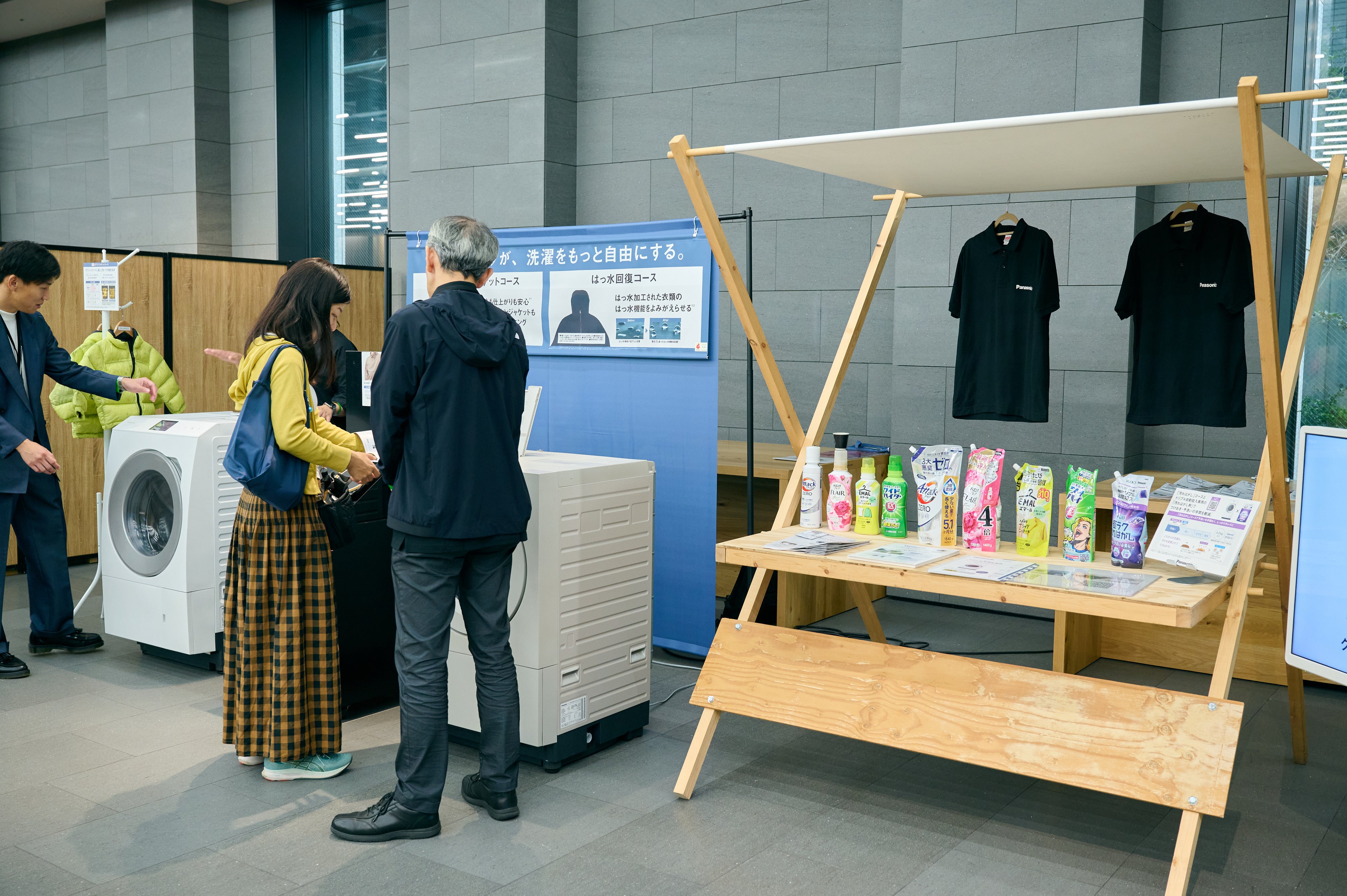 大切な衣類を長く使って欲しい、長持ちさせる方法は、という思いからゴールドウイン株式会社と共同開発した洗濯機モデルを特別展示、新機能の「ダウンジャケットコース」、「はっ水回復コース」などのおすすめコースを紹介しました。そのほかにも環境への影響を考慮し発案された、洗濯機自体を長く使うためのクリーニングサービスや、さまざまな理由で戻ってきた家電をもう一度使える状態に再生、提供する独自の自社サービスについて実際の洗濯機のディスプレイとともに体験型で紹介しました。