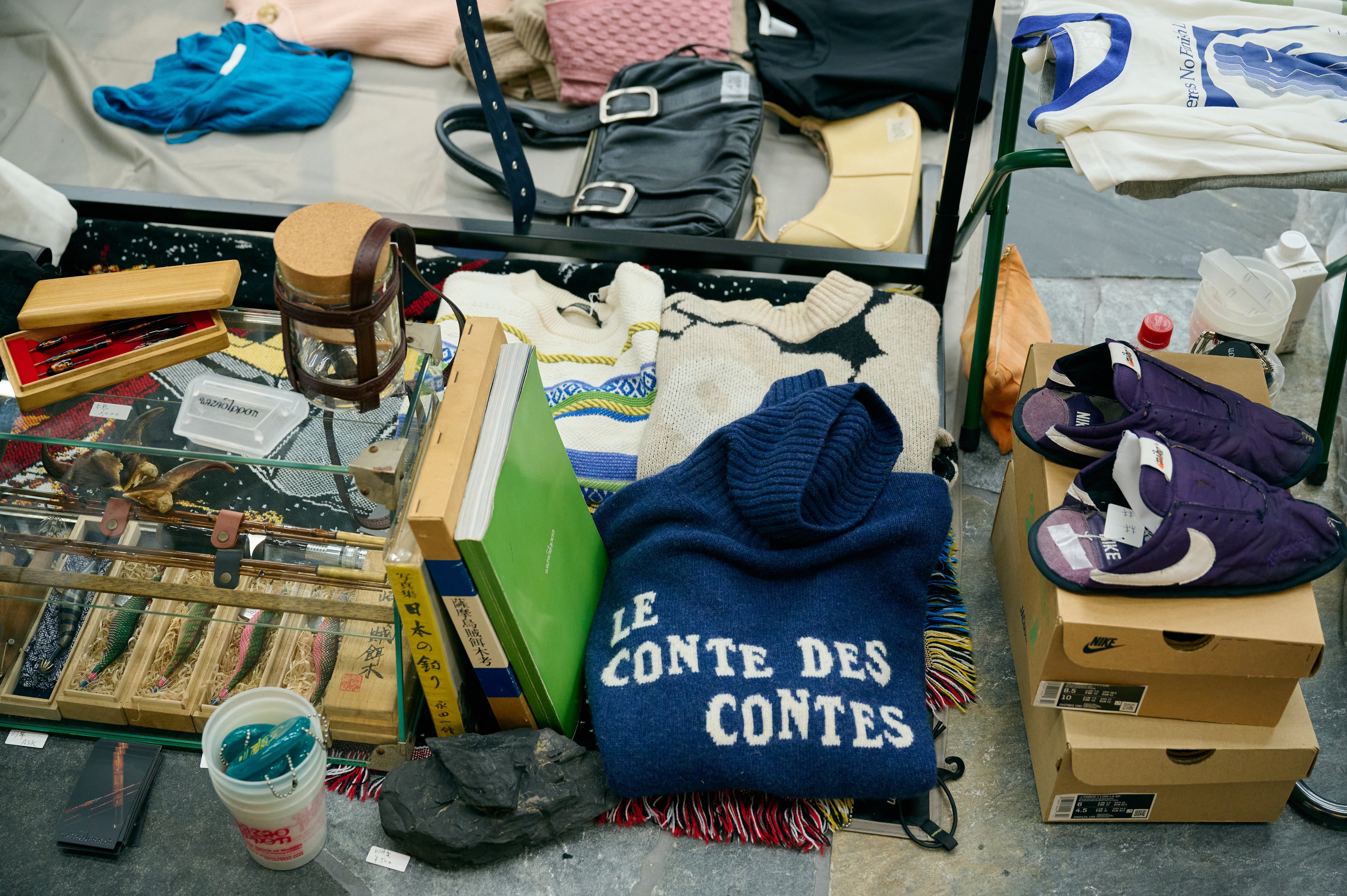 株式会社ゴールドウイン1階のイベントスペースを使用した会場には、「WWDJAPAN」ならではの有名スタイリストやモデル、アーティストをはじめとした業界を代表するファッションリーダーが出店。それぞれが愛用アイテムや家庭で眠っていた一点ものを販売しました。
