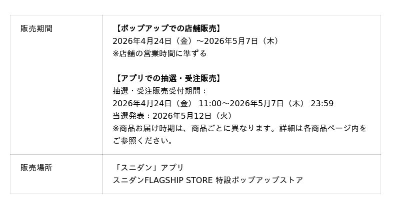 今回の武尊選手引退記念アイテムは、スニダンアプリ内での受注販売(※1)のほか、引退を記念して開催するポップアップにて店頭でもご購入いただくことができます。