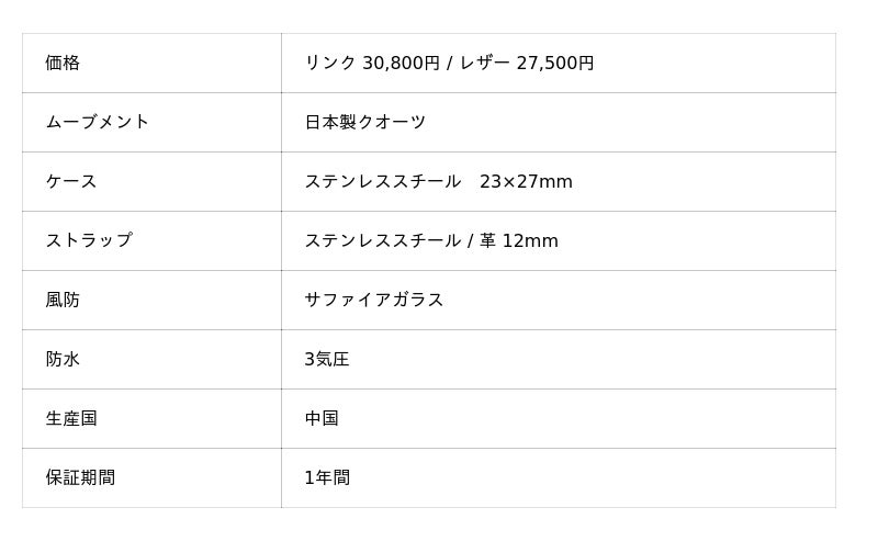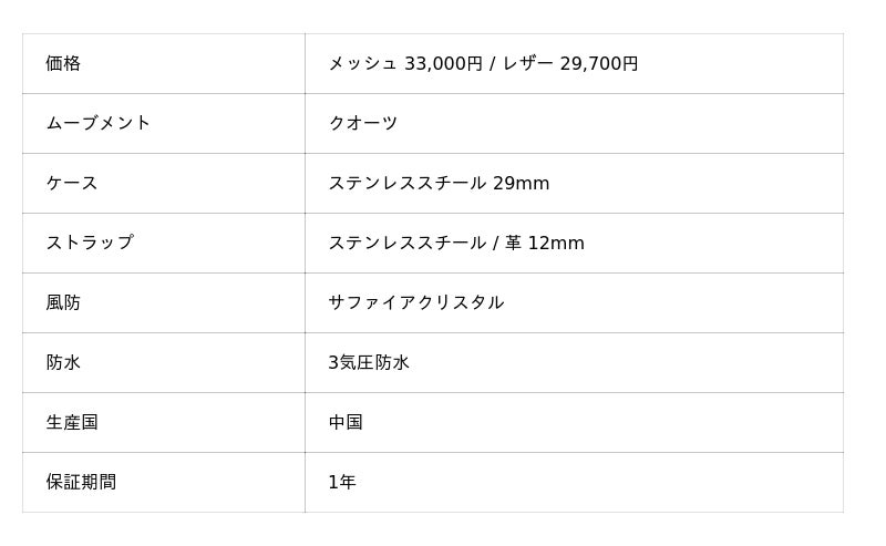 ウォッチコレクションは、クラシックでレトロなデザインから着想を得ています。それぞれの時計は、様々な年代のデザインやファッション、その時代の空気感をデザインに反映させています。完璧なタイムピースをご提供するために、1つのコレクションをローンチするのに、約1年半もの時間をかけてリサーチ・デ ザイン・開発を行っています。素材はステンレススチールとサファイアガラスを採用し、手の届く価格でありながら、高級感あふれる製品をお届けします。