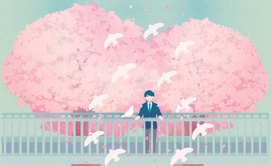 幸福の象徴の白いハトと新入学の象徴である桜を組み合わせ、明るく柔らかい色調で描いていただきました。