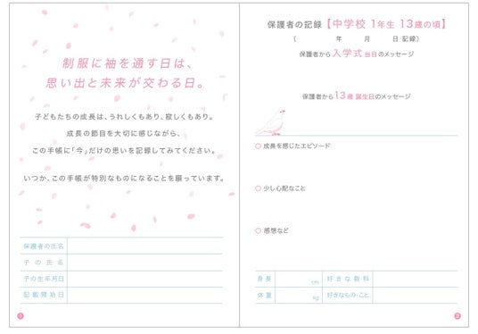 新入学を機に、改めて成長やその時々の思いを記録していただければと制作しました。高校卒業時やお子さまが独り立ちされる時、あるいは結婚や出産の際に記録をプレゼントとして贈り、未来へのエールとなる特別なものにしていただければと考えています。