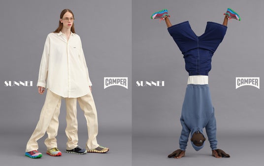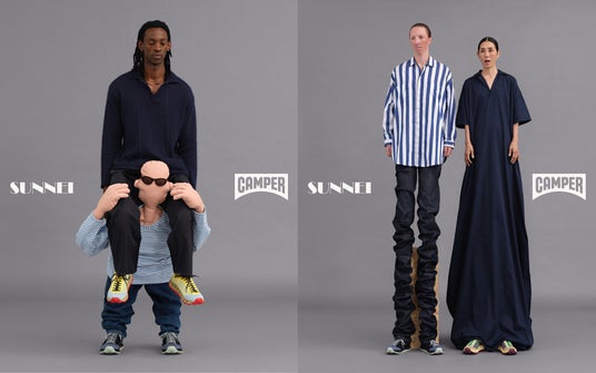 Loris Messina(ロリス・メッシーナ)とSimone Rizzo(シモーネ・リッツォ)によってミラノで設立されたSUNNEIは、カラフルな美学、レトロなアクセントとファッションへの型破りなアプローチで世界中の人気を集めています。そんなSUNNEIとの初コラボレーションは2024AWコレクションにて「CAMPER Together」*プロジェクトの一環として実現しました。第一弾のコラボレーションでは、カンペールのアーカイブからインスパイアされた、左右どちらの足でも履ける「FORONE」を発売しました。