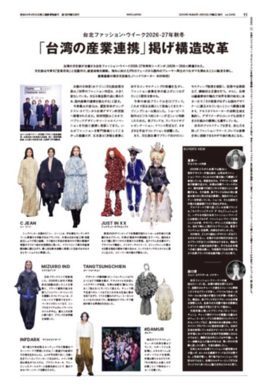 特集に続いてフォーカスするのは、「ザラ(ZARA)」製品をめぐるエスティ ローダー(ESTEE LAUDER)対フレグランスブランド「ジョー マローン(JO MALONE)」創業者・ジョー・マローン氏の商標権侵害訴訟の行方。双方の主張を整理しながら、その法的・ブランド的な意味を読み解きます。また台北ファッション・ウイーク2026-27年秋冬は、運営母体がコンデナストから台湾デザイン研究院へ移管され、海外PRから国内産業連携へと軸を転換した「変革元年」の模様をリポートします。ステファノ・ガッバーナ会長の退任に揺れるドルチェ&ガッバーナ(DOLCE&GABBANA)への「グッチ(GUCCI)」前CEO参画を含む、イタリアブランド全体に広がる構造変化も詳しく紐解きます。