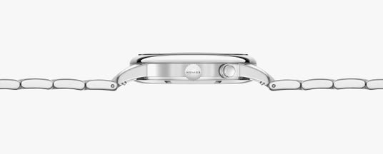 1990年、ドイツ時計産業の中心地ザクセン州グラスヒュッテに創業。創業以来、一貫して研究開発およびムーブメントの製造・組立をグラスヒュッテで行う一方、デザインに関してはベルリンのデザインスタジオにて行なっている。ドイツ工作連盟やバウハウスの理念を色濃く反映したデザインは、世界的に認められ、これまで170以上のデザイン賞を受賞している。その原点にはドイツ工作連盟とその理念を継承して設立されたバウハウスの精神がある。