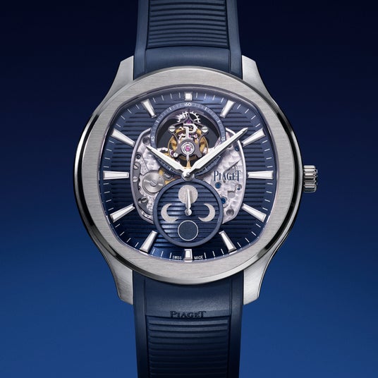 1979年の発表以来、時計界のアイコンとなり、純金製ブレスレットウォッチにより「スポーツシック」のトレンドを独自の解釈で具現化してきたピアジェ ポロ。今日、その物語は新たな領域へと踏み出します。2021年にスケルトンムーブメントで高度な技術を示し、2023年には薄型パーペチュアルカレンダーでさらなる進化を遂げたピアジェ ポロは、2025年、フライングトゥールビヨンとアストロノミカルムーンフェイズ表示を融合させ、複雑機構の頂点へと到達します。