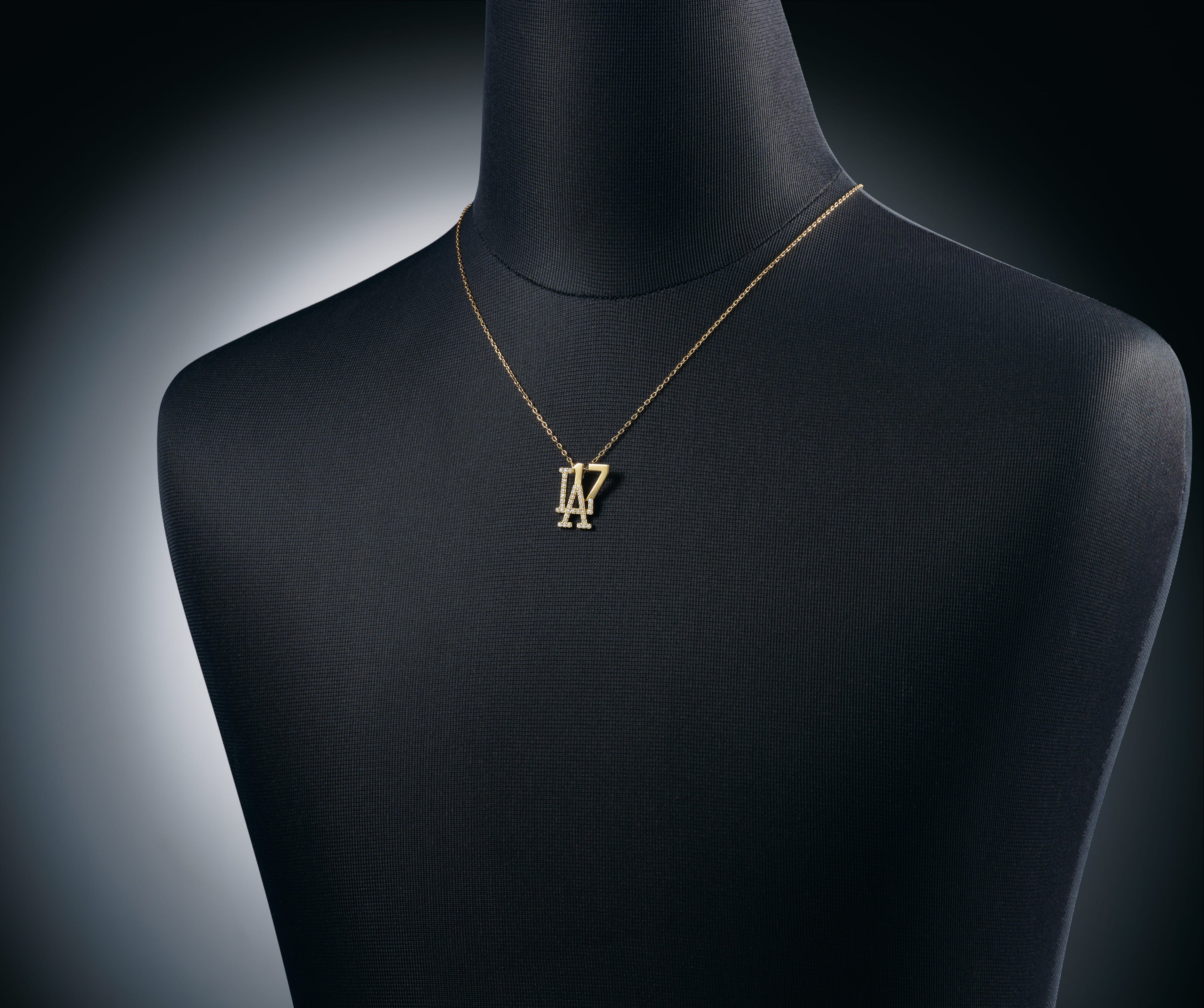 そんな新たな二刀流スーパースター伝説の幕開けとなる2025シーズンを記念して、今与だけのオフィシャルコラボレーションジュエリーが誕生しました。ダイヤモンドで象った「LA」のメインロゴの背景に、大谷選手の代名詞である背番号「17」を重ねた、打者・投手としての二刀流復活を象徴するデザイン。専用ケースには、ゴールドMLBロゴがプリントされています。大谷翔平選手2025シーズンのホームラン数<55本>と勝利数<1勝>にちなんだ、560個の数量限定でのお届けになります。