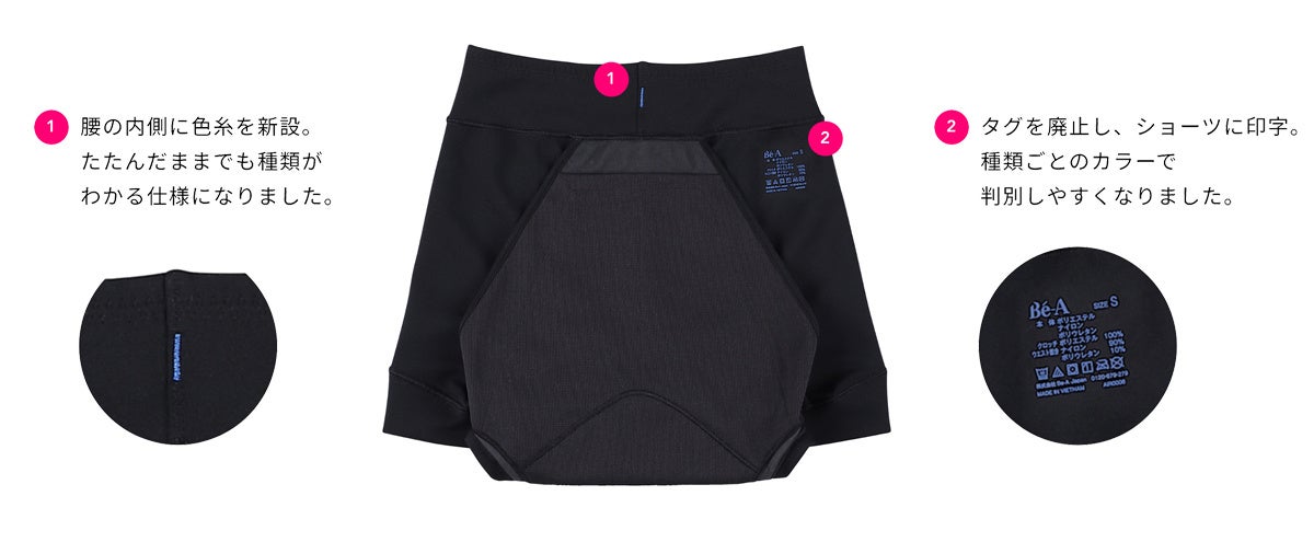 また、従来の品質タグを廃止し、ショーツに直接プリントしました。洗濯で取れる心配もなく、穿き心地もUP。