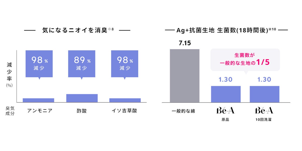 抗菌・消臭*²加工や、お腹のぬくもり設計など、快適さと心強さを兼ね備えた、Be-A史上最高クラスの超吸収型サニタリーショーツです。