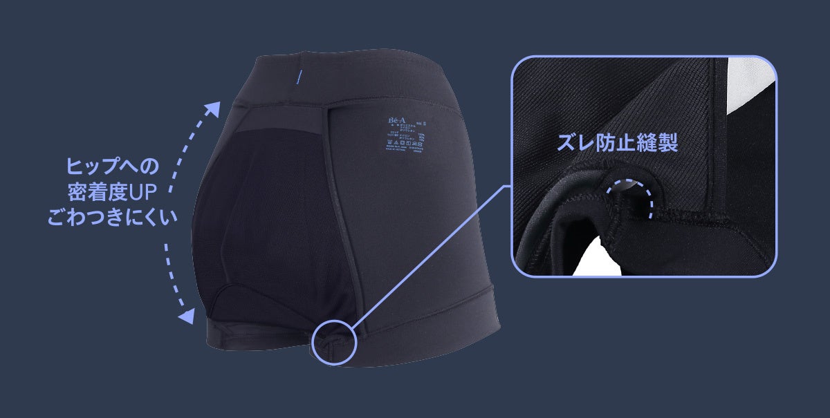 ヒップへの密着感UP。食い込み・ズレを抑える新設計。