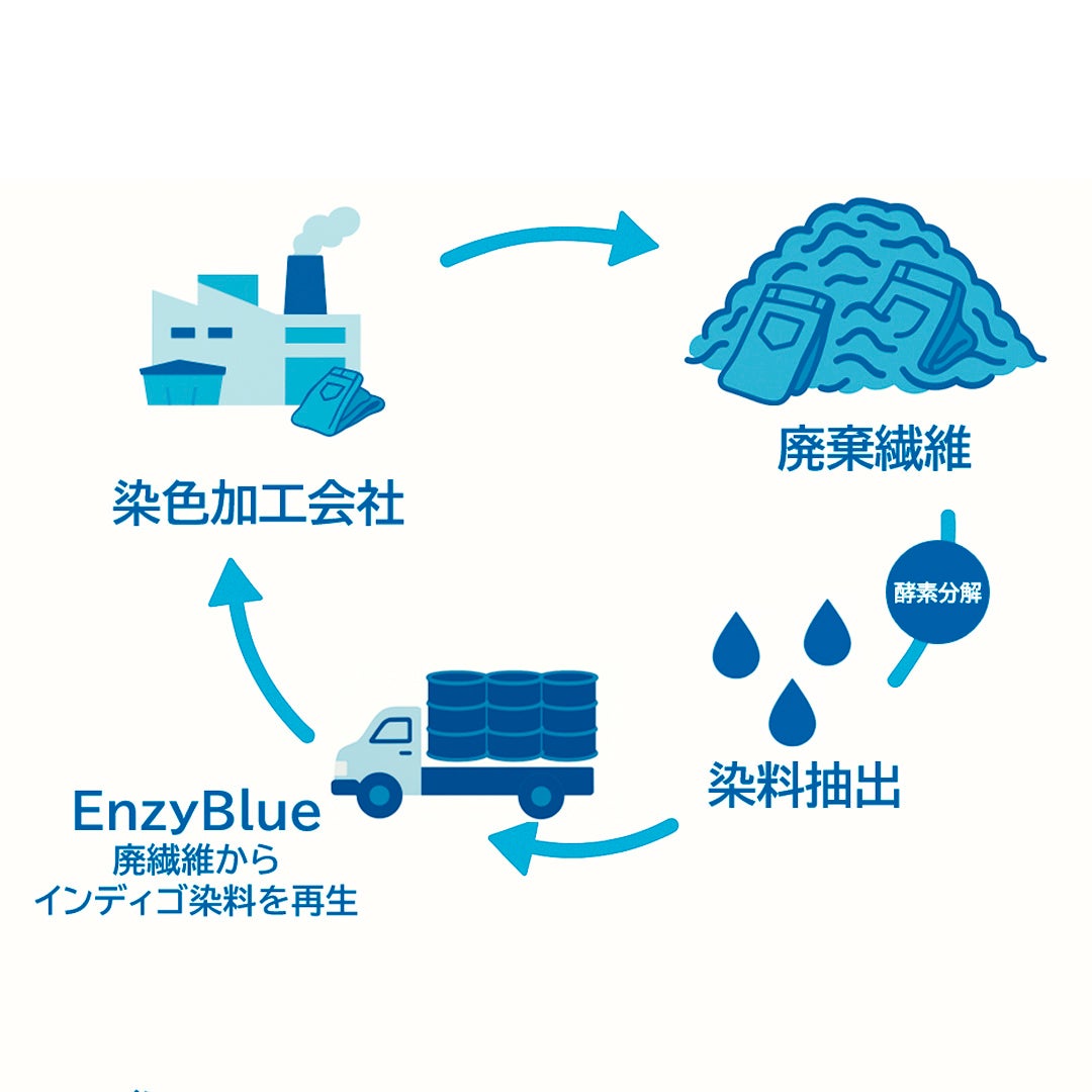 サーキュラーエコノミーな「EnzyBlue」の製造工程。