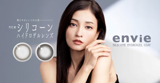 スタイルコンタクトレンズ「envie」は、大人の女性が、頑張りすぎず、ほどよく力をぬきながら自分らしい美しさや、自分のための美しさを表現できるコンタクトレンズであることを目指し、この度、ブランドの新シリーズとしてシリコーンハイドロゲル素材を採用した新色2色を開発致しました。