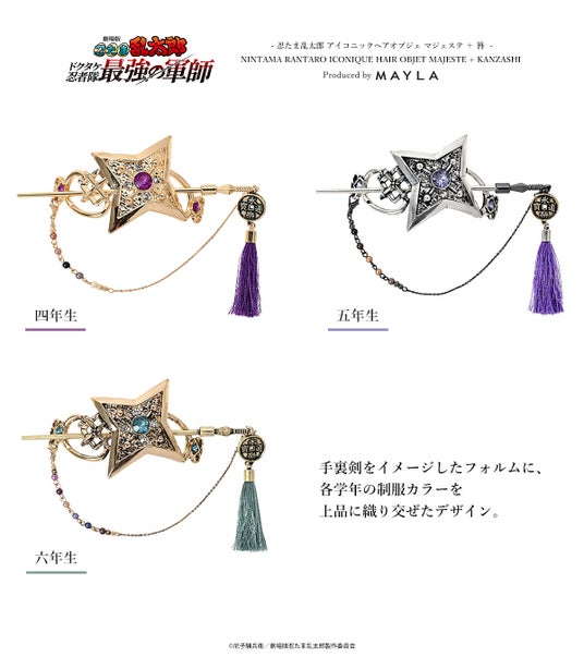 この度、MAYLAは『忍たま乱太郎』に登場するキャラクターたちをイメージした、アイコニックなマジェステ+簪をプロデュースしました。