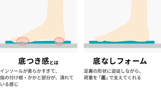 低反発インソールにありがちな「柔らかすぎて底を感じる=底つき感」。