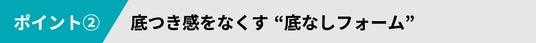 また、低反発インソールにありがちな欠点であった「底つき感」を解消するために、硬度・密度・反発性にこだわった独自素材「底なしフォーム」を採用。柔らかいのに、へたれづらい、一度履いたら脱け出せない「沼」のような新感覚の履き心地を目指しました。