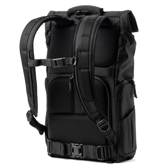 シンクタンクフォトの「フォーカスポイント」は、利便性と汎用性を追求して設計されたバックパックです。バックパネルとサイドパネルから素早くカメラにアクセスできます。また内部のインサートはすべて取り外し可能で、日々の通勤や移動、カフェでの作業にも適しています。