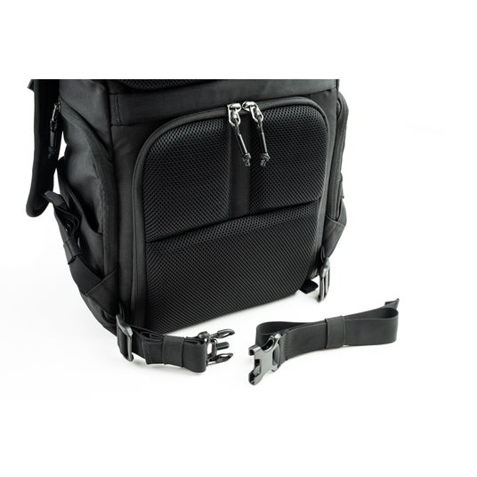 ショルダーストラップは、デイジーチェーンに加えてカメラクリップ用アタッチメントを装備。チェストストラップはマグネット式でスムーズな着脱が可能で、体型に合わせて取り付け位置を変えられます。ウエストストラップはフィット感を向上させたいときに便利で、不要な際は取り外しができます。