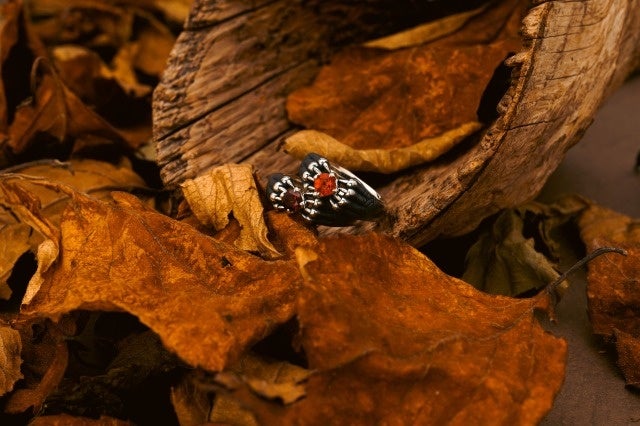 左:フェイスリングw/レッドダイヤモンド¥55,000(税込) 右:カルトリングw/レッドダイヤモンド¥49,500(税込)